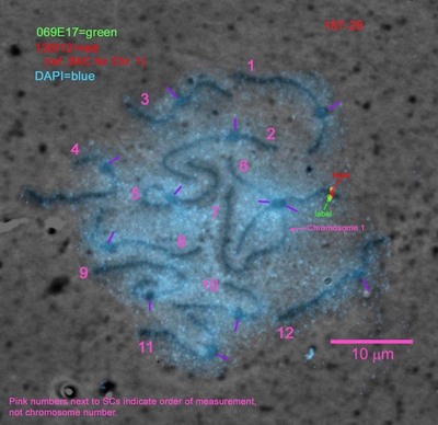 | SC Spread ID | Images | Distance from centromere (percentage of arm length) | ||